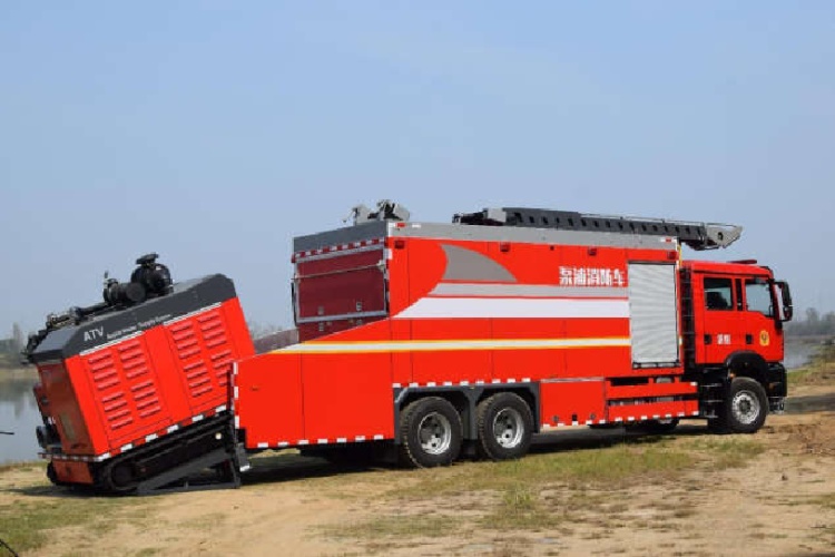 JDF5110TXFDF10/Z6水帶敷設(shè)消防車又叫管線車。由器材箱、水帶箱、水帶敷設(shè)機(jī)和 ATV 履帶式自行式供水排水機(jī)器人幾大部分組成,系統(tǒng)主要應(yīng)用于富水地區(qū)中型或大型火災(zāi)的火場(chǎng) 1000 米范圍內(nèi)、道路距水源在 30 米以內(nèi)的快速取水和快速供水。
