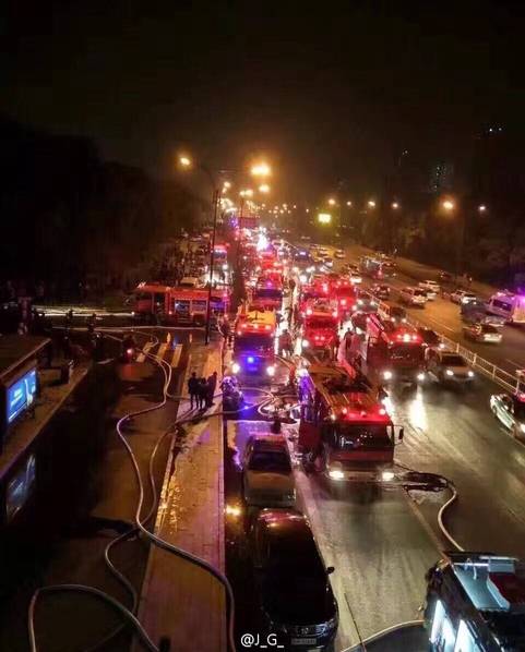 圖為數十輛消防車趕來救援。